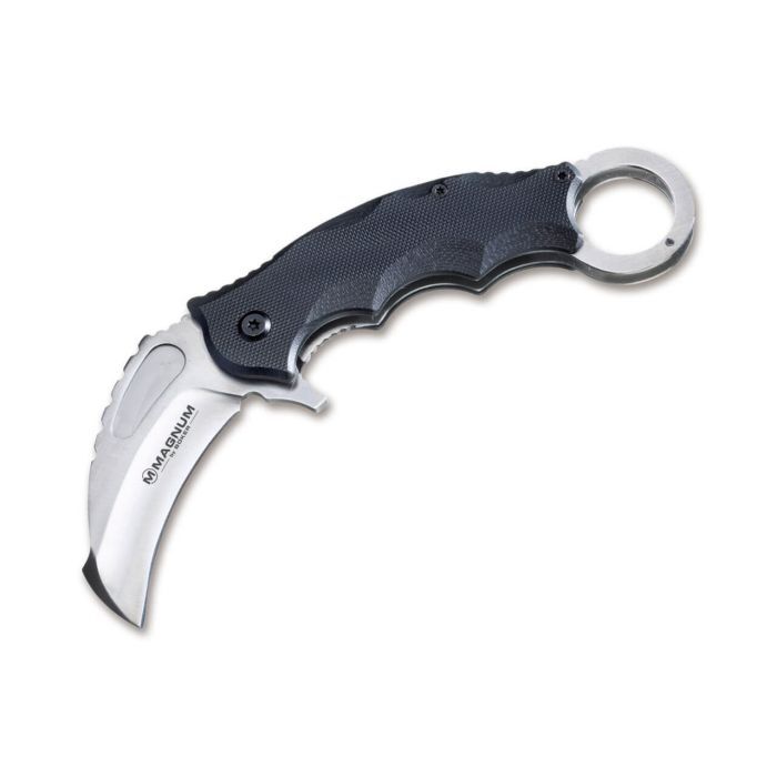 The Magnum Alpha Kilo is an original karambit that no oriental knife collection should be without. The spring-assisted 440A blade opens quickly and easily using the flipper, while a sturdy liner lock securely locks the blade in place. The pleasantly textured G10 handle fits comfortably in the hand. It features a tip-down clip and a distinctive grip ring.