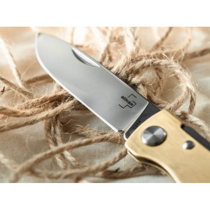 Το απλό Boker Plus Atlas Brass είναι ένας αξιόπιστος σουγιάς τσέπης με slipjoint, το οποίο σε αυτή την εξαιρετική vintage έκδοση είναι εξοπλισμένο με μια ορειχάλκινη λαβή στην οποία σχηματίζεται μια μοναδική πατίνα με την πάροδο του χρόνου. Η μινιμαλιστική κατασκευή είναι εξαιρετικά στιβαρή και καθιστά το εύχρηστο μαχαίρι τον τέλειο σύντροφο σε όλες τις περιστάσεις. Η σατινέ φινιρισμένη λάμα Droppoint από 12C27 ανοίγει με εγκοπή καρφιού και χειρίζεται εύκολα όλες τις καθημερινές εργασίες κοπής.